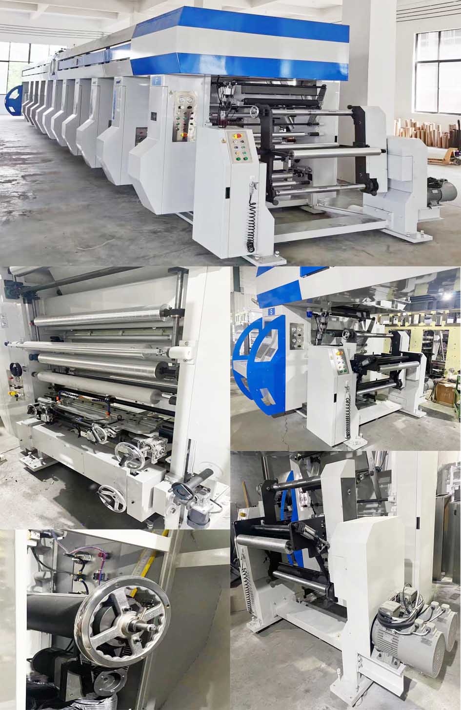 7.收、放料機構(gòu):采用雙工位,收、放料張力及收、放料牽引張力采用變頻矢量控制線速度。特點:加速套色穩(wěn)定,橫向不跑版,針對大批量印刷可節(jié)省材料、油墨、溶劑和能源,在高速全自動接換料,油墨、溶劑和能源節(jié)約20%左右,大大降低主品成本。