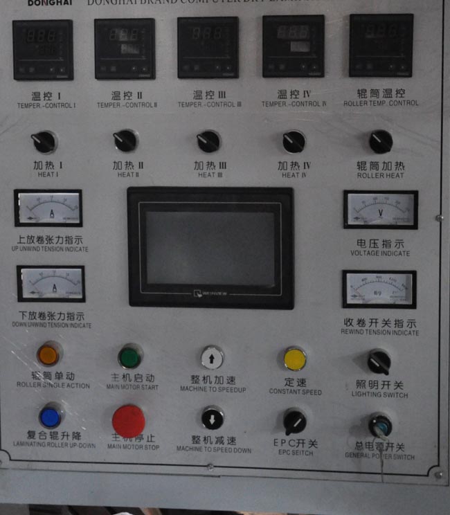 本機(jī)適用于各類(lèi)塑料薄膜,紙張,鋁箔等卷筒狀材料的兩層或多層復(fù)合。該機(jī)采用德國(guó)西門(mén)子PLC可編程序控制系統(tǒng)、臺(tái)灣威倫彩色觸摸屏人機(jī)操作界面。運(yùn)用現(xiàn)場(chǎng)總線網(wǎng)絡(luò)實(shí)現(xiàn)生產(chǎn)過(guò)程全自動(dòng)控制。PLC負(fù)責(zé)整機(jī)張力,速度等數(shù)據(jù)的輸入及預(yù)處理,并負(fù)責(zé)整機(jī)邏輯的控制與輸出。涂膠與復(fù)合兩大部分的速度同步及張力配置全數(shù)字式交流變頻控制系統(tǒng)(變頻電機(jī)+日本安川變頻器),實(shí)現(xiàn)張力全自動(dòng)控制。